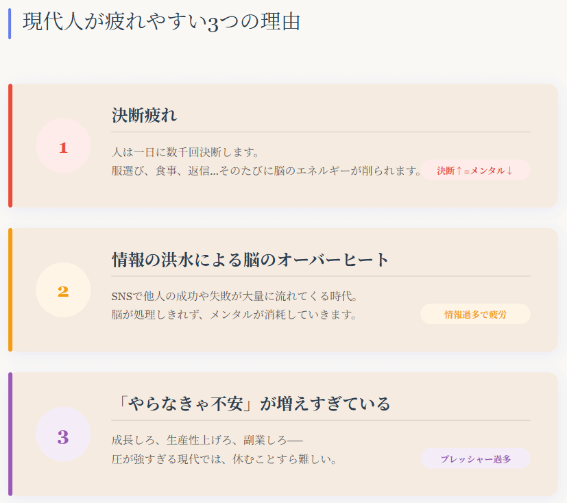 SNSで他人の成功や失敗が大量に流れてくる時代。脳が処理しきれず、メンタルが消耗していきます。