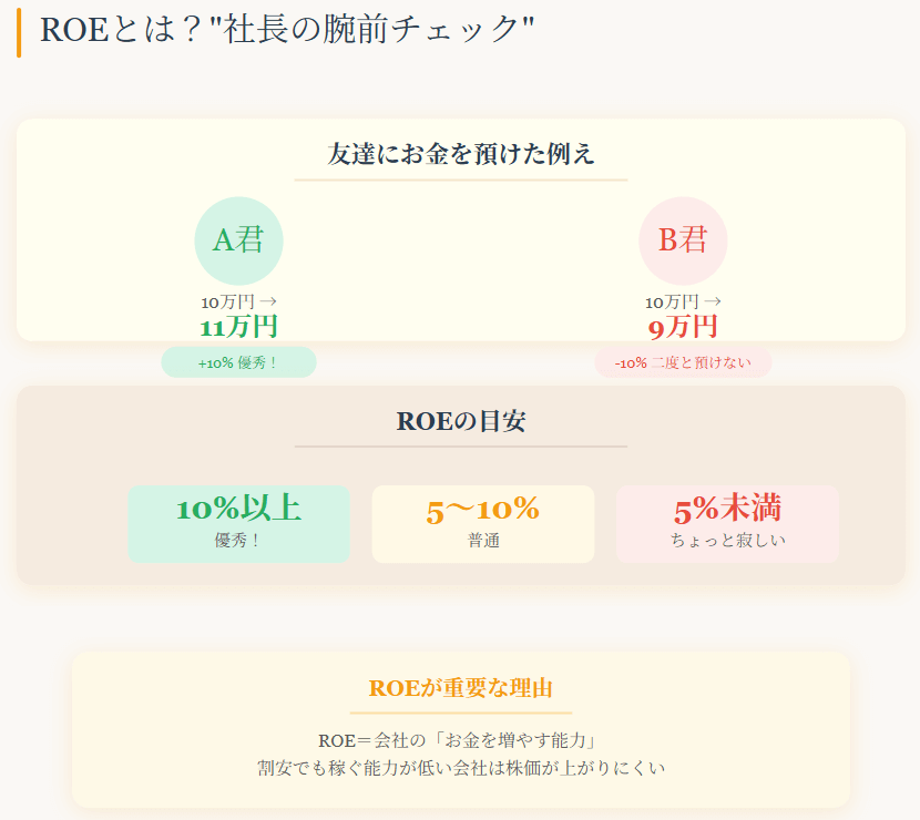 - ROE:社長、あなたお金増やすのうまいん?チェック