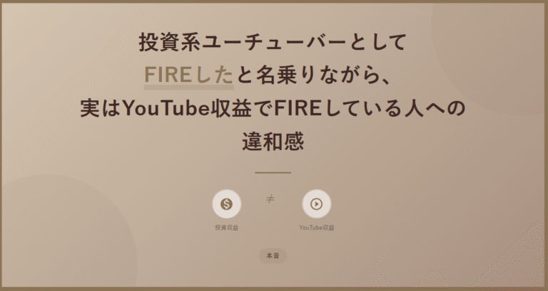 投資系ユーチューバーとしてFIREしたと名乗りながら、実はYouTube収益でFIREしている人への違和感【本音】