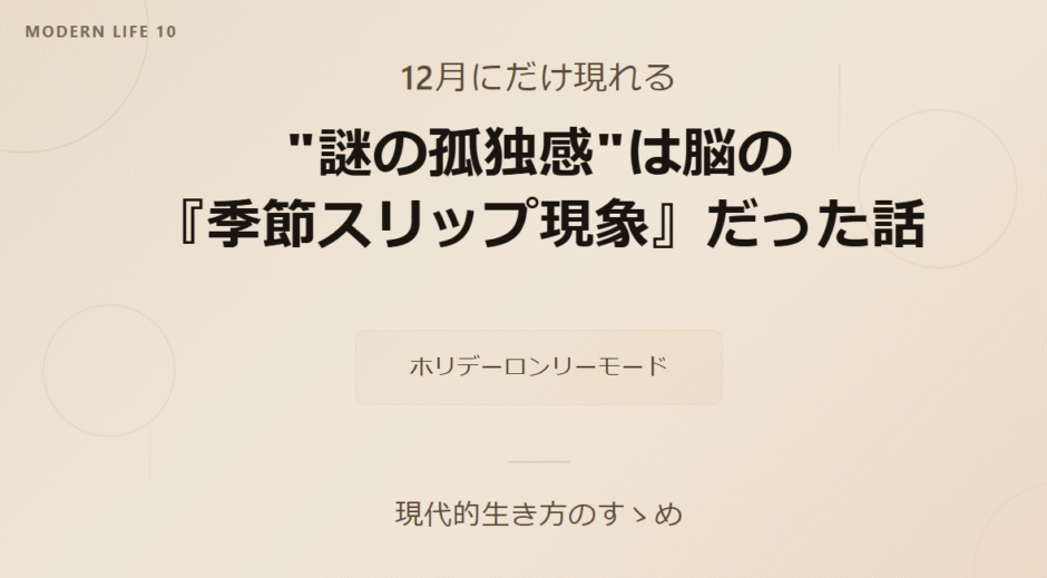 12月にだけ現れる“謎の孤独感”は脳の『季節スリップ現象』だった話【ホリデーロンリーモード】