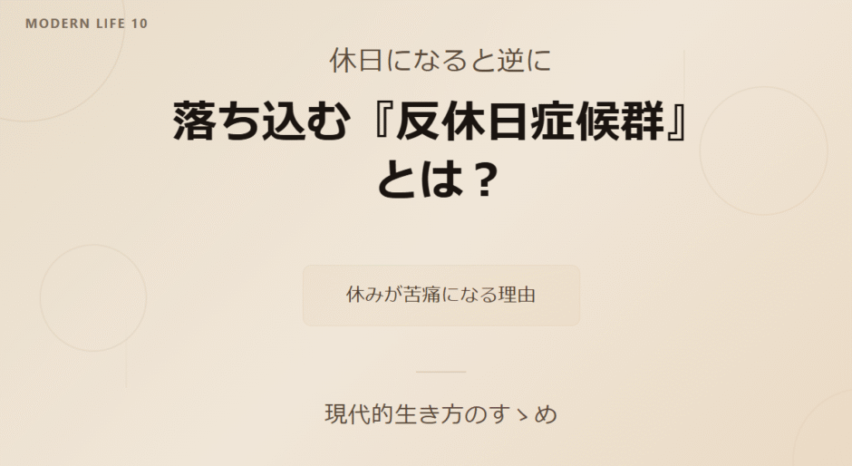 この“休日なのに気分が落ちる現象”――実は多くの人が経験している、現代特有のメンタル現象です。
